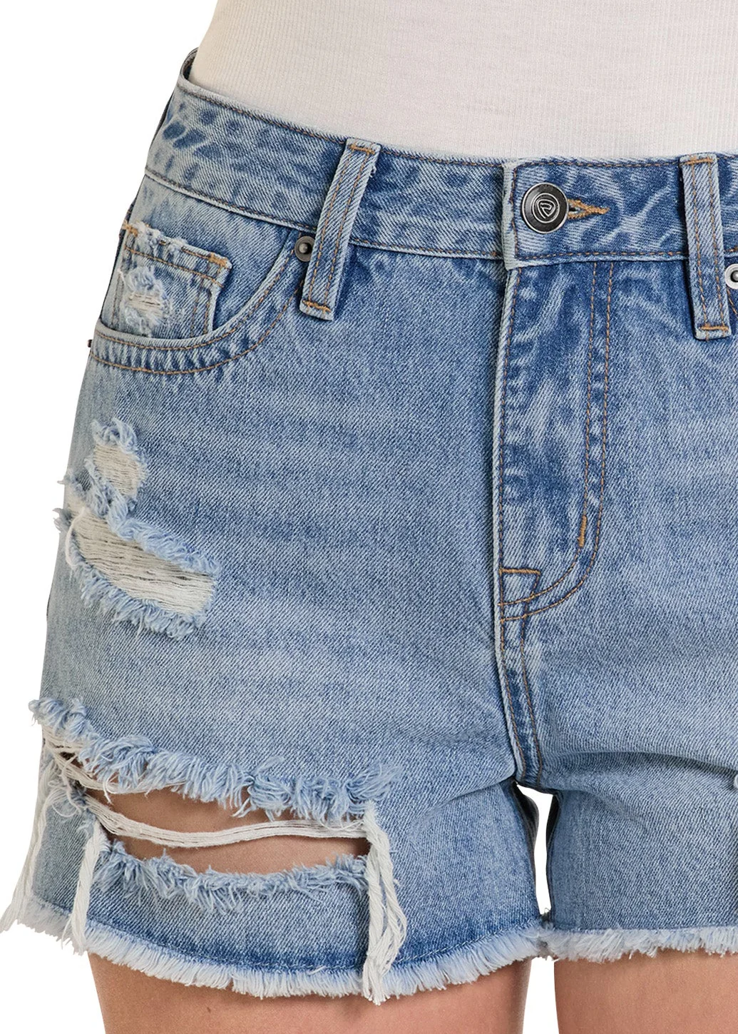 The Distressed Shorts are a chic addition to your warm-weather wardrobe. Designed with a high rise, these shorts come with front and back distressing for that trendy look. During the warmer months, these shorts will be your go-to for rodeos, festivals, and more.