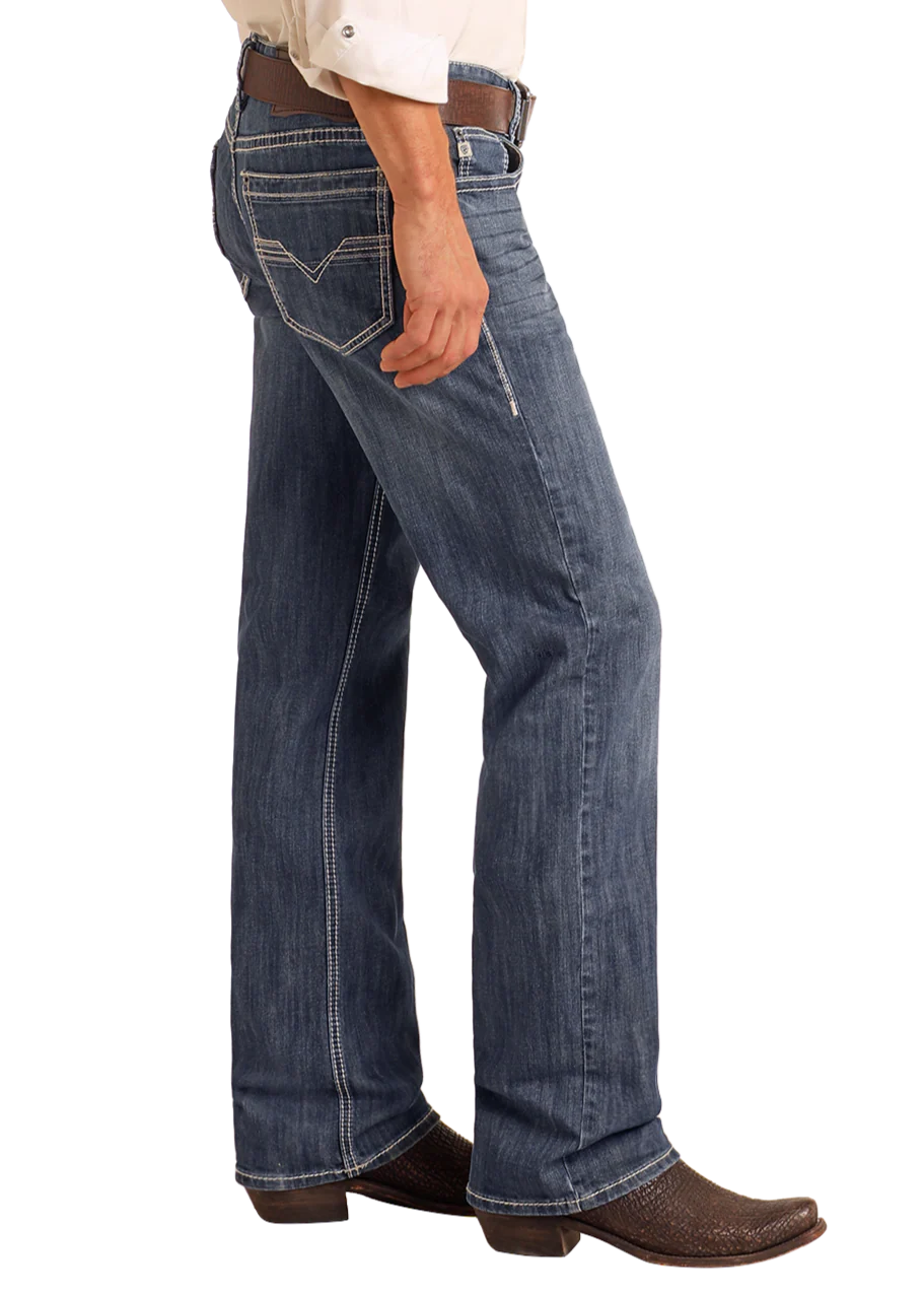 Discover unmatched comfort and flexibility with our Relaxed Fit Straight Leg Jeans. These men's jeans feature a medium vintage wash and relaxed fit, accented with our signature V-pocket detail. Crafted from 99% cotton and 1% spandex, they offer both style and flexibility.